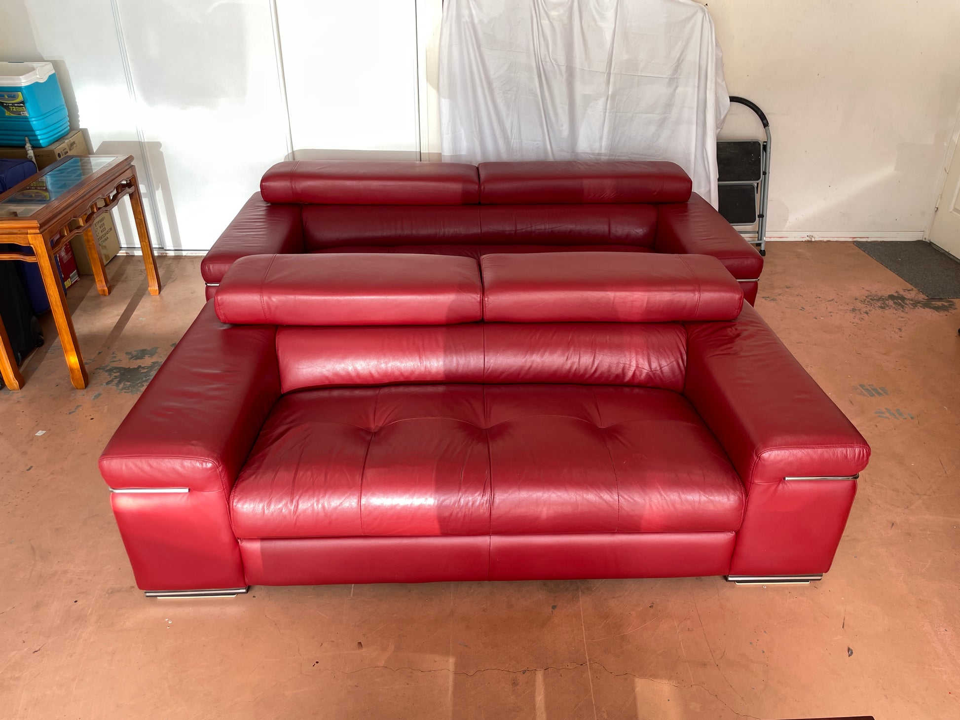 2.5 seater sofa + 3 seater sofa w/ adjustable headrests. $5000 RPP, purchased less than 5 years ago.
